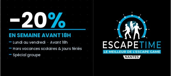 Code promo et bon de réduction ESCAPE TIME Nantes SAINT HERBLAIN : 20% de reduction